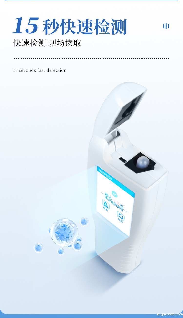 该设备采用生物化学反应方法检测ATP含量,ATP荧光检测仪基于萤火虫发光原理,利用“荧光素酶—荧光素体系”快速检测三磷酸腺苷(ATP)。ATP拭子含有可以裂解细胞膜的试剂,能将细胞内ATP释放出来,与试剂中含有的特异性酶发生反应,产生光,再用荧光照度计检测发光值,微生物的数量与发光值成正比,由于所有生物活细胞中含有恒量的ATP,所以ATP含量可以清晰地表明样品中微生物与其他生物残余的多少,用于判断卫生状况。