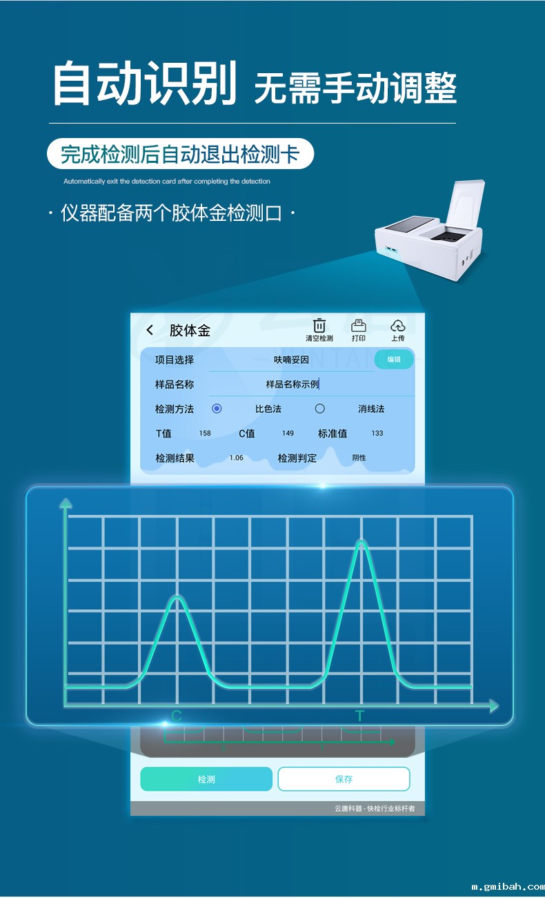 11.5、曲线形式:直插式扫描方式,显示金标卡图像,实时生成、识别CT曲线图,无需手动调整,完成检测后自动退出检测卡。兼容市场上其他金标卡,使用耗材不受限制。