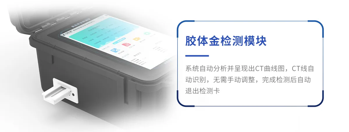 轨道式自动传输扫描方式,可实时显示金标卡实时图像,系统自动分析并呈现出CT曲线图,CT线自动识别,无需手动调整,完成检测后自动退出检测卡。