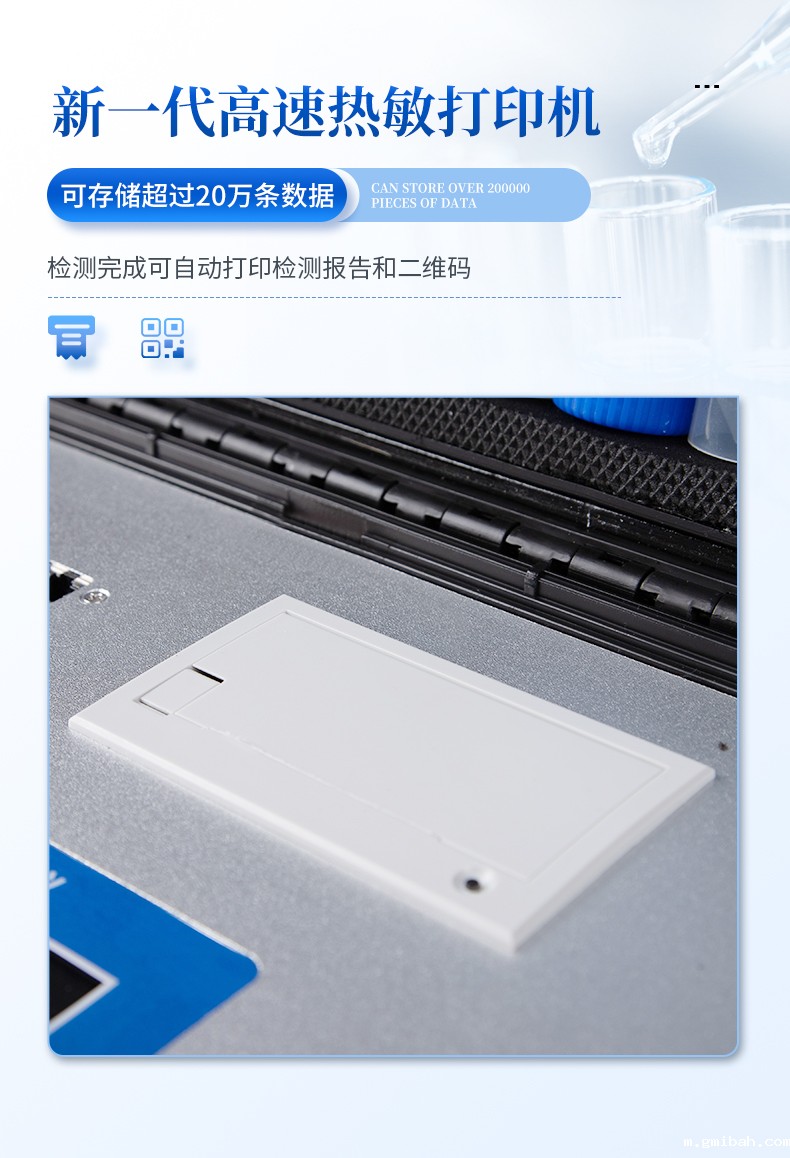 3、新一代高速热敏打印机,检测完成可自动打印检测报告和二维码。