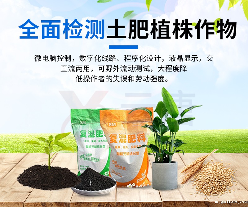 肥料养分:● 单质化肥中的氮、磷、钾; ● 复(混)合肥及尿素中的铵态氮、磷、钾; ● 有机肥中速效氮、速效磷、速效钾、全氮、全磷、全钾、pH、有机质等。