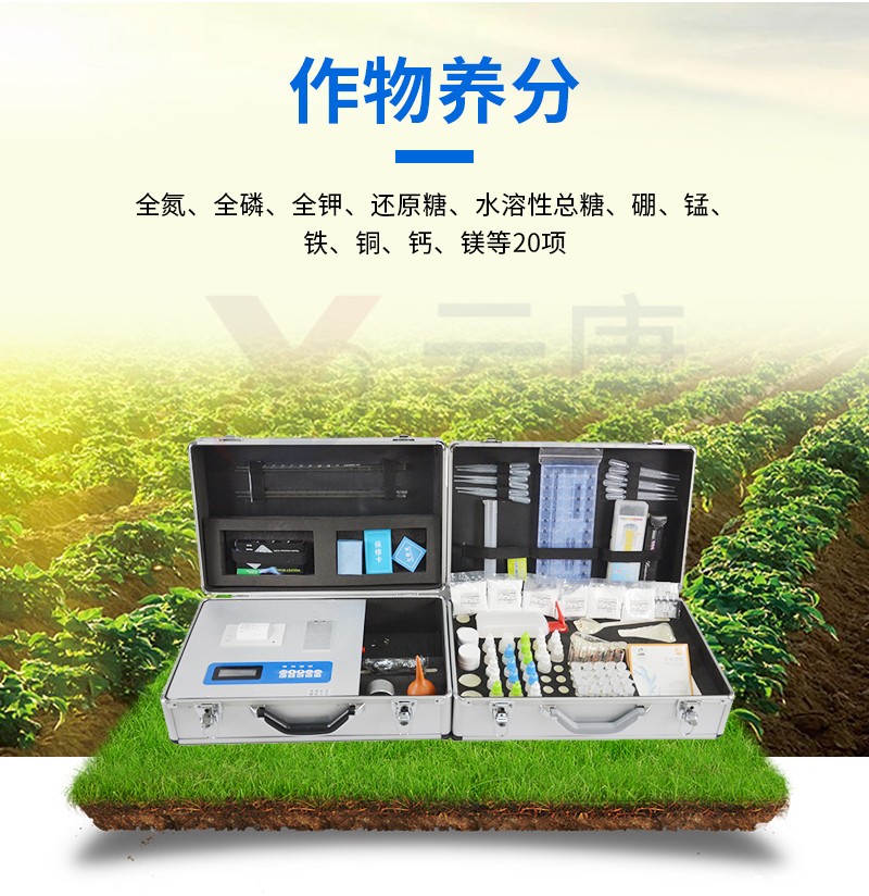 配套齐全:该仪器集药、器、仪为一体,携带方便,相当于一个小型实验室。适于农业服务部门或农资经销商、肥料厂商测土施肥和鉴别肥料真假。