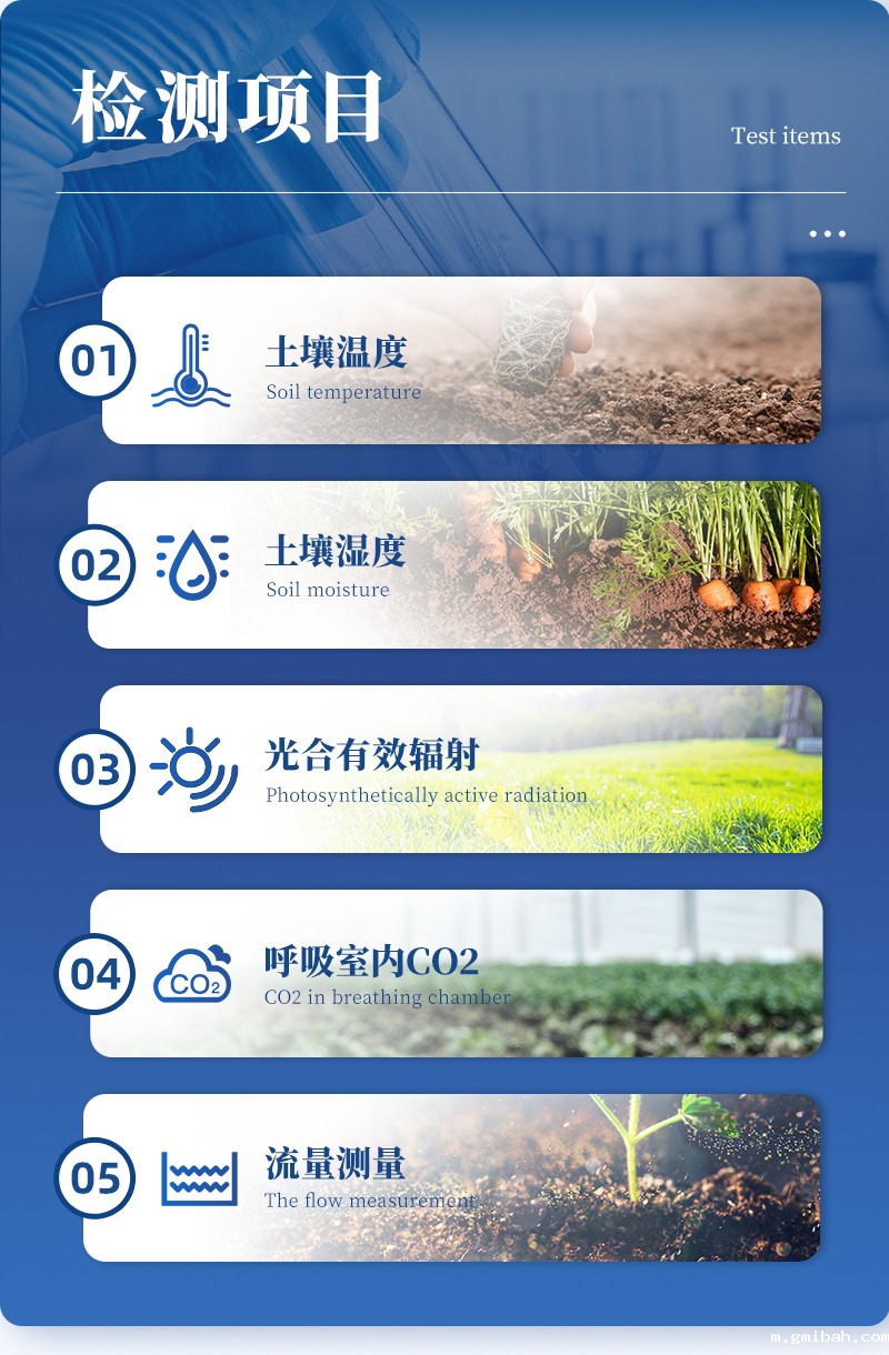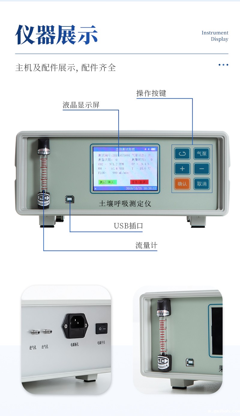 土壤呼吸是土壤生态系统碳素循环的一个重要过程,是土壤碳素同化异化平衡作用的结果,也是碳素由陆地生态系统返回大气的主要途径,是土壤中生命活动的表征,准确测定其释放量是评价生态系统中生物学过程的关键;通过对土壤呼吸及其相关参数的监测,可估测根系和土壤微生物对气候变化的响应。土壤CO2通量在时间和空间上受多种复杂物理和生物过程影响,长期、连续、准确的测量土壤碳通量,对陆地生态系统碳通量研究具有重要的意义。土壤呼吸测定仪可以同时显示呼吸室内部的CO2浓度、温度和湿度变化以及外部光合有效辐射强度。广泛应用于农业生态科研、碳源碳汇研究、全球气候变化、土地利用方式改变、生态修复研究、土壤微生物活力评估、植物生态研究、昆虫呼吸、根系呼吸以及水果贮藏。