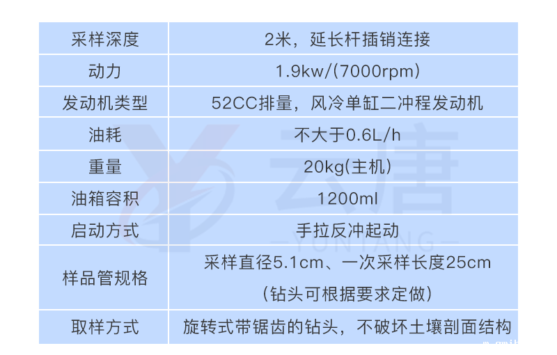 规 格: 采样直径5.1cm、一次采样长度25cm(钻头可根据要求定做)